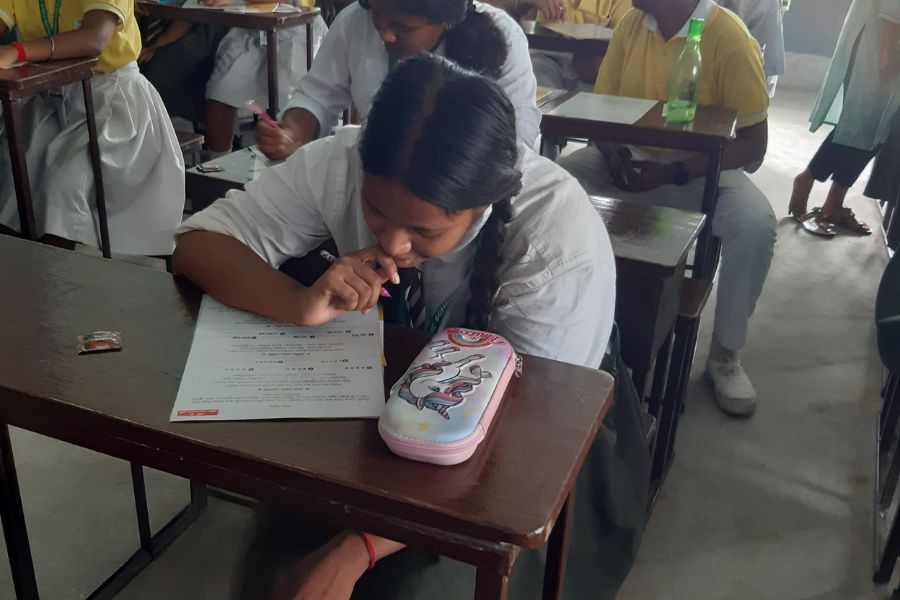 শব্দের পরীক্ষায় মনোনিবেশ করেছে মডার্ন পাবলিক স্কুলের পড়ুয়ারা