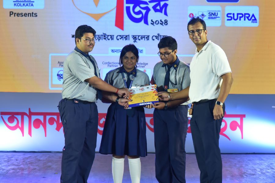 শব্দ-জব্দ ২০২৪ — ক্যুইজের আদলে বাংলা শব্দের বিভিন্ন মজার খেলা নিয়ে রাজ্যের ১২টি জেলার ২০৮টি স্কুলে হাজির হয়েছিল আনন্দবাজার অনলাইন। লক্ষ্য ছিল শিক্ষার্থীদের বাংলা ভাষার দক্ষতাকে সুচারু ও সুনিপুণ করে তোলার। সর্বোপরি মাতৃভাষার শিকড়ের সঙ্গে নতুন প্রজন্মকে জুড়ে রাখার। ‘শব্দ-জব্দ ২০২৪’ সেই লক্ষ্যে অনেকটাই সফল।