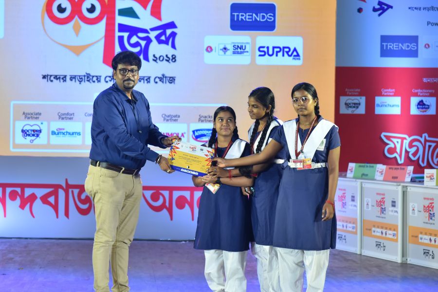 শব্দ-জব্দ ২০২৪ — ক্যুইজের আদলে বাংলা শব্দের বিভিন্ন মজার খেলা নিয়ে রাজ্যের ১২টি জেলার ২০৮টি স্কুলে হাজির হয়েছিল আনন্দবাজার অনলাইন। লক্ষ্য ছিল শিক্ষার্থীদের বাংলা ভাষার দক্ষতাকে সুচারু ও সুনিপুণ করে তোলার। সর্বোপরি মাতৃভাষার শিকড়ের সঙ্গে নতুন প্রজন্মকে জুড়ে রাখার। ‘শব্দ-জব্দ ২০২৪’ সেই লক্ষ্যে অনেকটাই সফল।