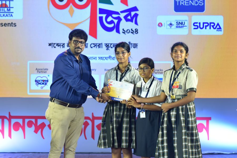 শব্দ-জব্দ ২০২৪ — ক্যুইজের আদলে বাংলা শব্দের বিভিন্ন মজার খেলা নিয়ে রাজ্যের ১২টি জেলার ২০৮টি স্কুলে হাজির হয়েছিল আনন্দবাজার অনলাইন। লক্ষ্য ছিল শিক্ষার্থীদের বাংলা ভাষার দক্ষতাকে সুচারু ও সুনিপুণ করে তোলার। সর্বোপরি মাতৃভাষার শিকড়ের সঙ্গে নতুন প্রজন্মকে জুড়ে রাখার। ‘শব্দ-জব্দ ২০২৪’ সেই লক্ষ্যে অনেকটাই সফল।