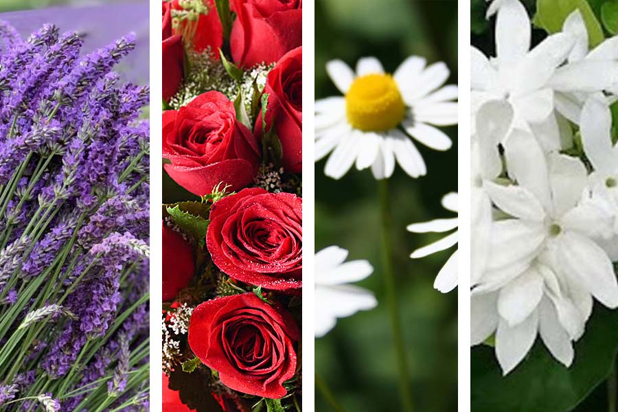 ক্যামোমাইল- ক্যামোমাইল ফুল থেকে চা-ও তৈরি হয়। যা অত্যন্ত স্বাস্থ্যকর। এর গন্ধ মন ভাল করে তুলতে পারে। উদ্বেগ, চাপ কমাতে ক্যামোমাইলের গন্ধ বিশেষ সহায়ক।