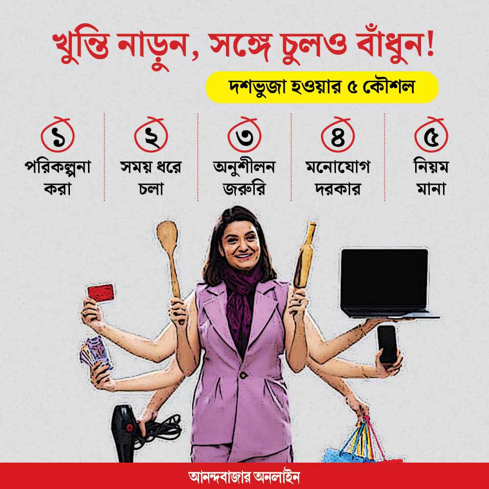 ব্যস্ততম জীবনে নির্দিষ্ট সময়ের মধ্যে কাজ করা অত্যন্ত জরুরি। তার জন্য অনেকেই একসঙ্গে অনেকগুলি কাজ করার চেষ্টা করেন। কিন্তু সব সময়ে তা সম্ভব হয় না। তবে অসম্ভবও কিছু নয়। কিছু কৌশল জানা থাকলে দশভুজা হয়ে ওঠা অসম্ভব হবে না।