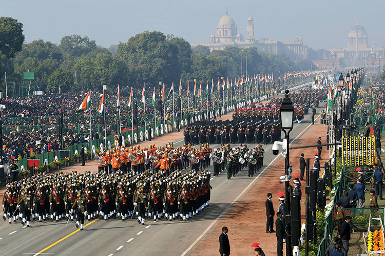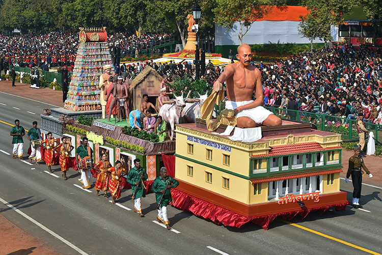 এ দিন রাজধানীর বিজয় চক থেকে ২২টি ট্যাবলো-সহ প্যারেড এগিয়েছে রাজপথ, তিলক মার্গ, বাহাদুর শাহ জাফর মার্গ, নেতাজি সুভাষ মার্গ ধরে রেড ফোর্ডের দিকে। প্রায় ৯০ মিনিট ধরে চলে সে প্যারেড।