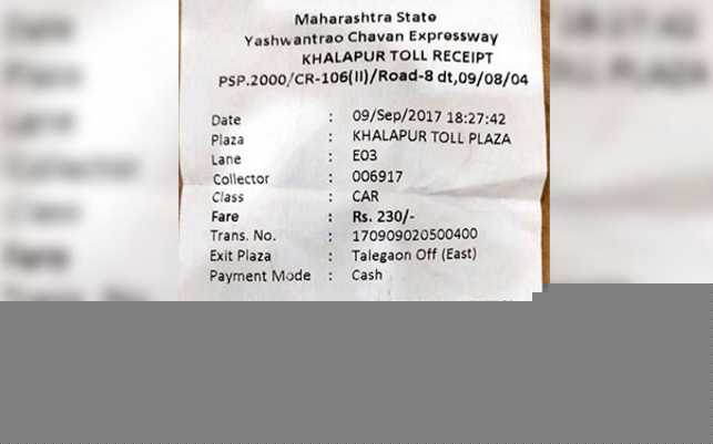 টোল প্লাজার সেই রসিদ