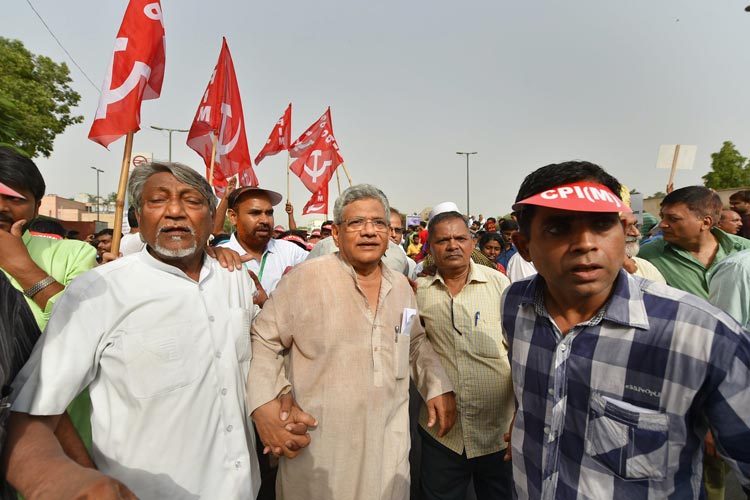 আপের মিছিলে সিপিএম সাধারণ সম্পাদক সীতারাম ইযেচুরি। —পিটিআই