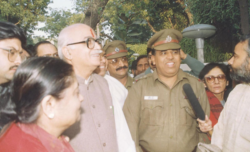 আড়াই দশক আগের সেই দিন। বাবরি ধ্বংসের পর গ্রেফতার করা হচ্ছে লালকৃষ্ণ আডবাণীকে। আবার কি ফিরবে সেই অস্বস্তি? ছবি: আনন্দবাজার আর্কাইভ থেকে।