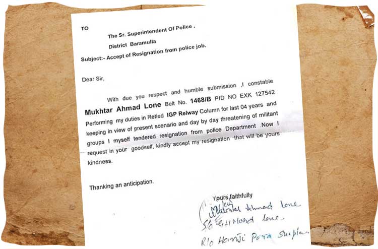 মুখতার আহমদ লোন নামে এক কর্মীর ইস্তফাপত্র।