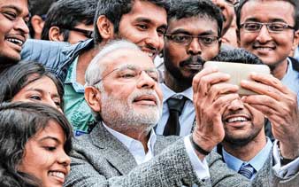 ভারতীয় পড়ুয়াদের সঙ্গে নিজস্বী তুলছেন প্রধানমন্ত্রী নরেন্দ্র মোদী।