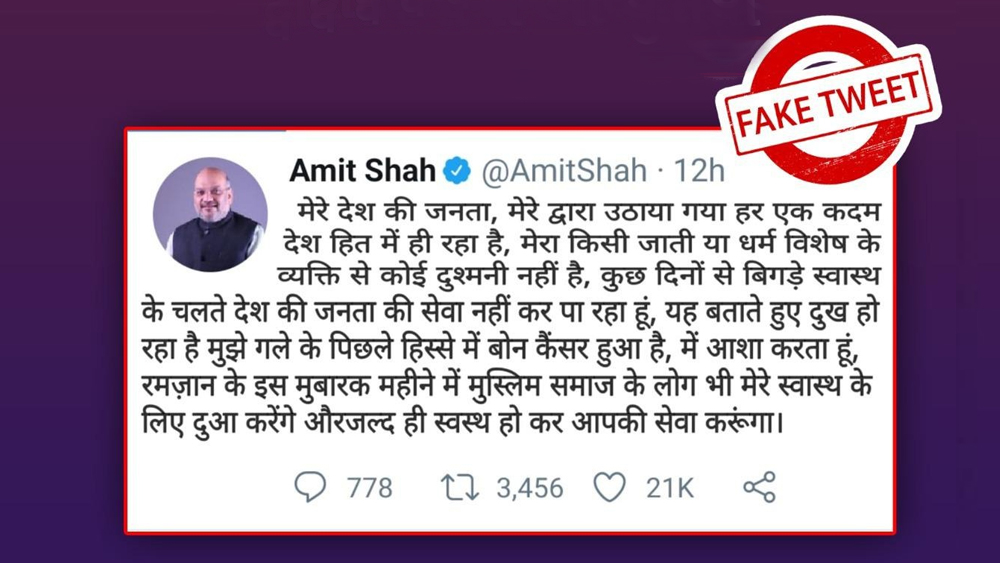 সোশ্যাল মিডিয়ায় অমিত শাহের নামে এ ধরনের ভুয়ো টুইটও দেখা গিয়েছে।