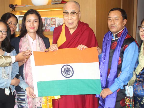 দলাই লামার হাত থেকে ফ্ল্যাগ অফ। ওই ভারতীয় পতাকাই আজ সকালে এভারেস্টের মাথায় ওড়ালেন আনসু।