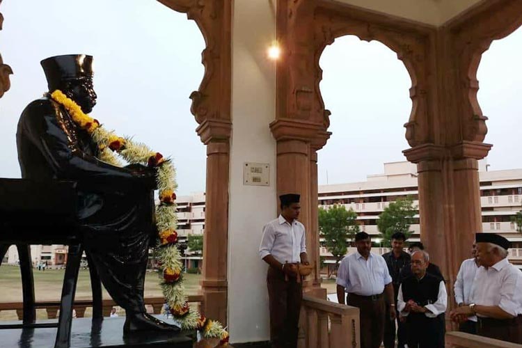 হেডগেওয়ারের মূর্তিতে মালা দিলেন প্রণব মুখোপাধ্যায়।
