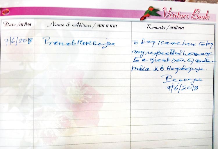 স্বাক্ষর: কে বি হেডগেওয়ারের বাড়িতে ভিজিটর্স বুকে প্রণববাবুর মন্তব্য।