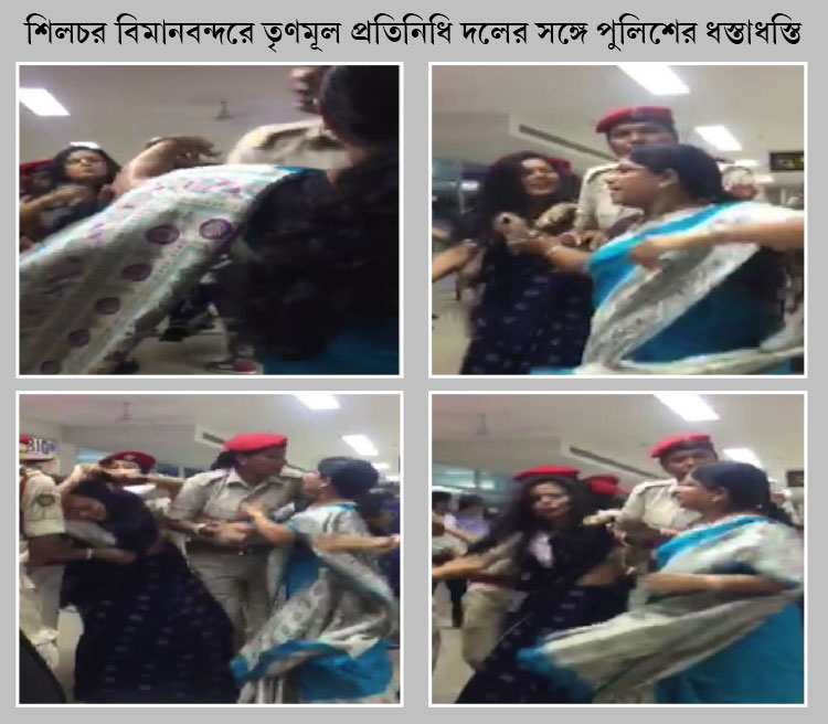 বাধা দেওয়া হবে, সে আভাস ছিলই। হলও তাই। শিলচর বিমানবন্দরের বাইরেই বেরোতে দেওয়া হল না তৃণমূলের প্রতিনিধি দলকে। বৃহস্পতিবার দুপুরে উড়ান থেকে নামার পরে বিমানবন্দরের ভিতরেই সুখেন্দুশেখর রায়, কাকলি ঘোষ দস্তিদার, ফিরহাদ হাকিমদের পথ আটকাল অসমের পুলিশ। বাধা সরিয়ে জোর করে বিমানবন্দরের প্রস্থান পথের দিকে দৌড়নোর চেষ্টা করলেন কয়েকজন। তাতে পুলিশের সঙ্গে জোরদার ধস্তাধস্তি হল সাংসদ-বিধায়কদের। অসমের পুলিশ শিলচর বিমানবন্দরে বাংলা থেকে যাওয়া প্রতিনিধি দলকে মেরেছে বলেও অভিযোগ তৃণমূলের। তবে সুখেন্দু-কাকলিরা এখনও হাল ছাড়েননি। শিলচর বিমানবন্দরে অবস্থান বিক্ষোভ শুরু করেছেন তাঁরা। প্রয়োজনে সারা রাত বিমানবন্দরেই বসে থাকবেন, এমনও জানিয়েছেন বারাসতের সাংসদ।
