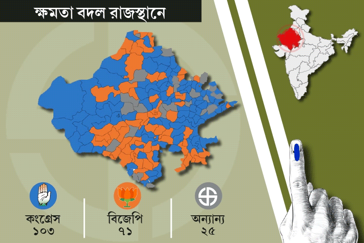 বসুন্ধরা রাজেকে সরিয়ে রাজস্থানে সরকার গড়ার পথে জাতীয় কংগ্রেস। ইঙ্গিতটা দীর্ঘদিন ধরেই ছিল। নির্বাচনের আগের সমীক্ষা থেকে শুরু করে বুথ ফেরত সমীক্ষা, সর্বত্রই স্পষ্ট ইঙ্গিত ছিল পালাবদলের। মঙ্গলবার গণনা শুরু হওয়ার পর থেকে রাজস্থানে বাস্তবেও দেখা গেল একই চিত্র।
