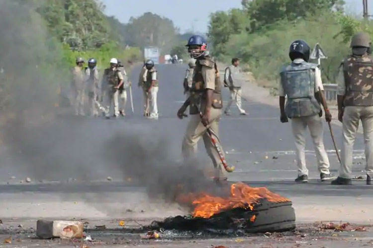 রাস্তা অবরোধ করে আন্দোলন কৃষকদের। পুলিশকে লক্ষ্য করে ছোড়া হয় পাথর।