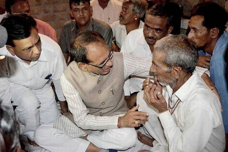 মৃত কৃষকদের পরিবারের সঙ্গে শিবরাজ সিংহ চৌহান।