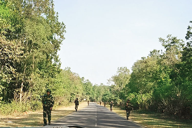 কড়া নজর: বস্তারে টহল আধাসেনার। রবিবার। —নিজস্ব চিত্র।