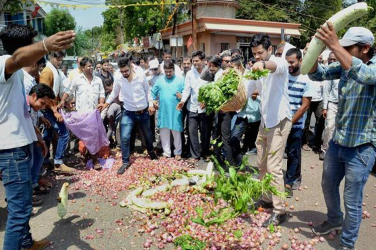 কৃষি ঋণ মকুবের দাবিতে ফসল ছড়িয়ে বিক্ষোভ চাষিদের। —ফাইল চিত্র