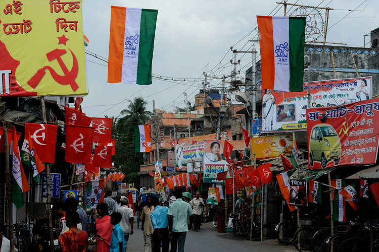 ভোটের সময় পশ্চিমবঙ্গে এমন ছবি খুবই পরিচিত।—ফাইল চিত্র।