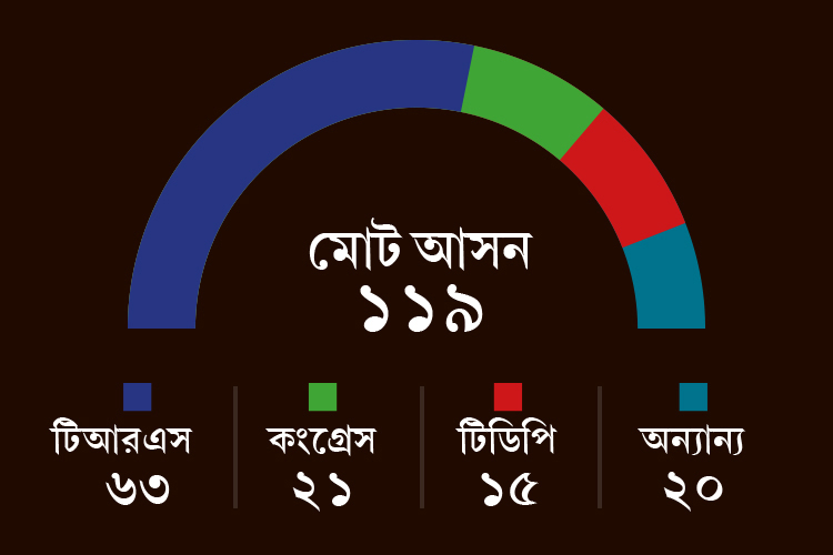 টিআরএস এর আগের নির্বাচনে, অর্থাৎ রাজ্যের প্রথম ভোটে একক ভাবে ৬৩টি আসন পেয়েছিল। এমআইএম তাদের সমর্থন করে। পরে বেশ কয়েক জন টিডিপি, কংগ্রেস এবং নির্দল বিধায়কও টিআরএসে চলে যান। সব মিলিয়ে বিদায়ী মুখ্যমন্ত্রী কেসিআরের সঙ্গে ৯০ জন বিধায়ক ছিলেন। এ বার কেসিআর-কে রুখতে কংগ্রেস মহাজোট করেছে। সেই জোটে টিডিপি ছাড়াও আছে সিপিআই এবং টিজিএস।