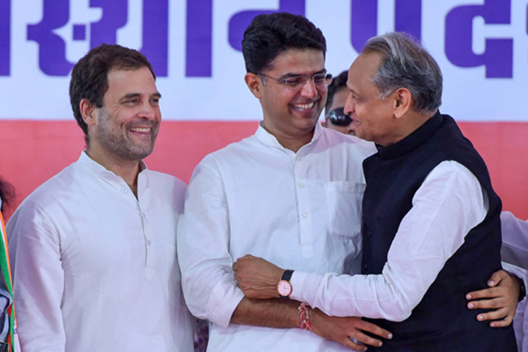 রাহুল গাঁধী, অশোক গহলৌত এবং শচীন পায়লট।—ফাইল চিত্র।