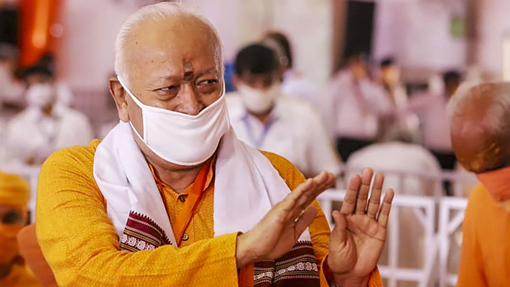 রামমন্দির প্রসঙ্গে তিনি বলেন, ‘‘আরএসএস আগেই জানত, রামমন্দির তৈরিতে ২০-৩০ বছর লাগবে। শেষ পর্যন্ত তিন দশক পর সেই স্বপ্ন সত্যি হল।’’ সরসঙ্ঘচালক যোগ করেন, ‘‘আমাদের দেশ বসুধৈব কুটুম্বকম-এ বিশ্বাসী। অর্থাৎ সারা বিশ্ব আমাদের অতিথি। দেশবাসীর এই ভাবনাই যে কোনও সমস্যার সমাধান করতে পারে। আমরা সবাইকে একসঙ্গে নিয়ে চলায় বিশ্বাসী। আজ এক নব ভারতের এক নতুন সূচনা হল।’’ তিনি আরও বলেন, ‘‘আজ সারা দেশে আনন্দের ঢেউ। বহু বছরের আশা পূর্ণ হওয়ার আনন্দ। ভারতকে আত্মনির্ভর বানানোর জন্য যে আত্মবিশ্বাসের প্রয়োজন ছিল, আজ তারই সূচনা হল।’’