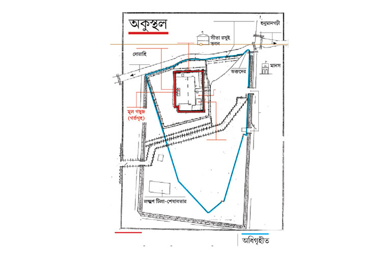 ১৯৯২-এর ৬ ডিসেম্বর ধ্বংসলীলার আগে এখানেই ছিল সেই বিতর্কিত কাঠামো, রাম চবুতরা, কীর্তন চবুতরা, সিংহদ্বার প্রভৃতি।