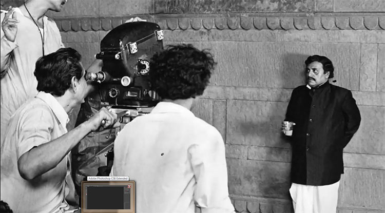 সত্যজিৎ রায়ের ‘জয় বাবা ফেলুনাথ’ ছবির শুটিংয়ে মগনলাল মেঘরাজবেশী উৎপল দত্ত।