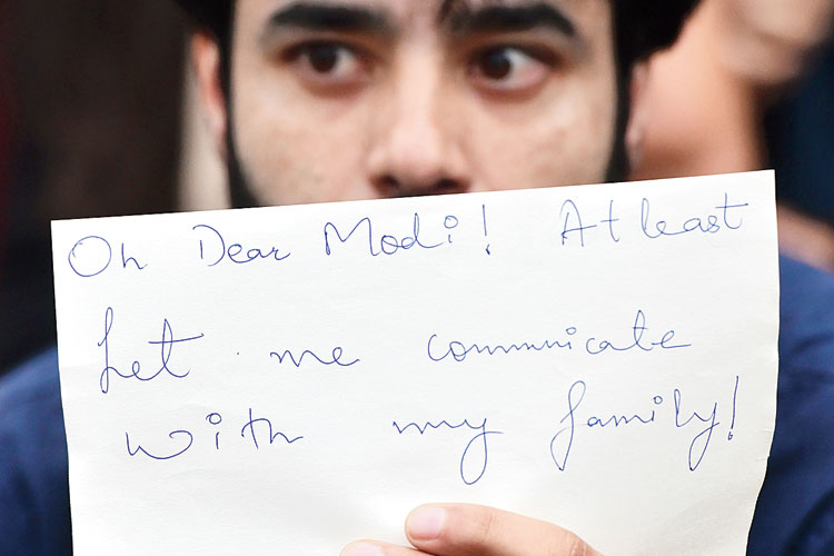 আর্তি: কাশ্মীর পরিস্থিতি নিয়ে প্রতিবাদ বেঙ্গালুরুতে। সোমবার। ছবি: এএফপি।