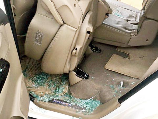 আক্রান্ত: বন্যাকবলিত এলাকা পরিদর্শনে গিয়ে পাথরের ঘায়ে ভাঙে রাহুল গাঁধীর গাড়ির কাচ। যে ইস্যুতে আজ উত্তাল হল সংসদ।— ফাইল ছবি।