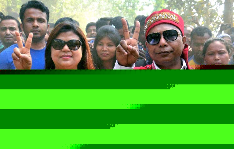 মুখ্যমন্ত্রী মুকুল সাংমা এবং তাঁর স্ত্রী ডিকাঞ্চি ডি শিরা, দু’জনেই জিতেছেন নিজের নিজের কেন্দ্রে। কিন্তু কংগ্রেস আটকে গিয়েছে ম্যাজিক ফিগার থেকে অনেক দূরেই। ছবি: পিটিআই।