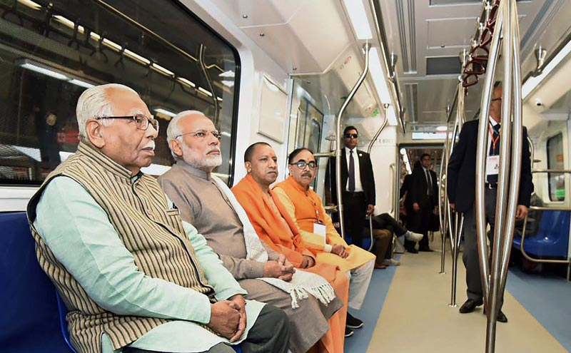 Narendra Modi Yogi Adityanath Noida Delhi Metro Magenta Line নরেন্দ্র মোদী যোগী আদিত্যনাথ নয়ডা