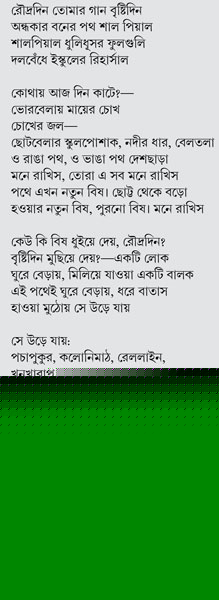 আমি তো জানি কে জন্মায়। আমার রবীন্দ্রনাথ জন্মায় ওই খাঁ খাঁ বৈশাখে। খাঁ খাঁ গ্রীষ্মে, আমি ওঁকে বুকে নিয়ে ঘুরে বেড়িয়েছি। ঘুরে বেড়াই আর ভাবি—