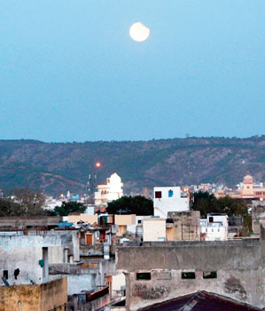 জয়পুরের আকাশে চন্দ্রগ্রহণ। শনিবার। ছবি: পিটিআই।