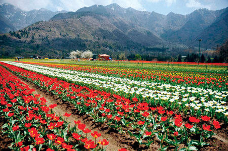 ফুলের মেলা। শ্রীনগরের টিউলিপ উদ্যান। ছবি: পিটিআই।