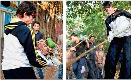 স্বচ্ছ ভারত অভিযানে সামিল অমিতাভ বচ্চন। এই অভিযানে যোগ দেওয়ার জন্য প্রধানমন্ত্রী নরেন্দ্র মোদী