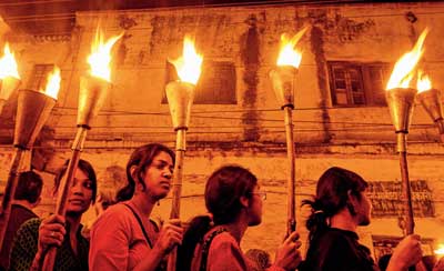 ভোপাল গ্যাস কাণ্ডের ৩০ বছর পূর্তিতে মশাল নিয়ে মিছিল। মঙ্গলবার ভোপালে। ছবি: এএফপি