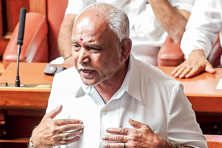 বিধানসভায় ইস্তফা ঘোষণার আগে ইয়েদুরাপ্পা। ছবি: পিটিআই
