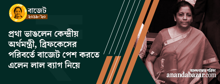 • প্রথা ভেঙে কেন্দ্রীয় অর্থমন্ত্রীর হাতে ব্রিফকেসের পরিবর্তে লাল ব্যাগ।