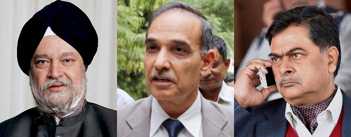 বাঁদিক থেকে হরদীপ সিংহ পুরী, সত্যপাল সিংহ, আর কে সিংহ।