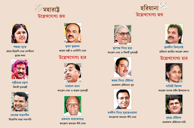 ফলাফল বলে দিচ্ছে, দুই রাজ্যেই বিজেপি সরকার গড়তে চলেছে। হরিয়ানায় একক ভাবে। মহারাষ্ট্রে শিবসেনা বা এনসিপি-র মধ্যে কারও সমর্থনের জোরে। আজ দুপুরে দু’রাজ্য জয়ের ছবিটি স্পষ্ট হয়ে যেতেই বিজেপি সদর দফতরে আলোচনার কেন্দ্রবিন্দু হয়ে ওঠে একটাই প্রশ্ন দু’রাজ্যে মুখ্যমন্ত্রী কে হচ্ছেন? দল বলছে, হরিয়ানায় সিদ্ধান্ত নেওয়া তুলনায় সহজ। কিন্তু মহারাষ্ট্রে এটা কিছুটা নির্ভর করছে জোটসঙ্গীর ইচ্ছা-অনিচ্ছার উপরে।