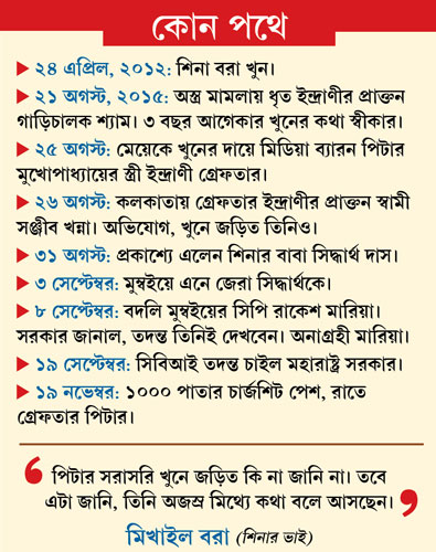 আকস্মিক এবং নাটকীয়! পিটারের গ্রেফতারির খবরে এ দিন এই দু’টো বিশেষণই সবচেয়ে বেশি শোনা গিয়েছে। শিনা বরা মামলা সিবিআইয়ের হাতে যাওয়ার পর থেকে তদন্ত প্রক্রিয়া অনেকাংশে সংবাদমাধ্যমের চোখের আড়ালে চলে গিয়েছিল। মুম্বইয়ের প্রাক্তন পুলিশ কমিশনার রাকেশ মারিয়া যে ভাবে রোজ সাংবাদিকদের সঙ্গে কথা বলতেন, সিবিআই তা করেনি। কার্যত গত দু’মাসে শিনা মামলার তেমন কোনও অগ্রগতির কথা জানাই যায়নি। ইন্দ্রাণী অসুস্থ হয়ে দু’দু’বার হাসপাতালে ভর্তি হওয়া ছা়ড়া শিনা মামলা সংক্রান্ত আর কোনও খবরই চমক তৈরি করেনি। আজও
