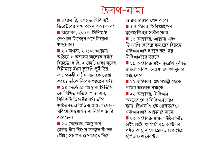 সিবিআইয়ের কোন্দলে বিরোধীরা খুশি হলেও, ইডি বা আয়কর দফতর মতো অন্য তদন্তকারী সংস্থাগুলি নিজেদের কাজ করে যাবে বলে স্পষ্ট করে দিয়েছে সরকারের একটি শীর্ষ সূত্র। ইডি সূত্র বলছে, সিবিআই-তে ঝামেলা হচ্ছে বলে ইডির তদন্ত চালিয়ে যেতে কোনও সমস্যা নেই। তারা তাদের কাজ চালিয়ে যাচ্ছে। একই ভাবে আয়কর দফতরও আজ লালুপ্রসাদ ও পরিবারের ১২৮ কোটির ১৭টি বেনামি সম্পত্তির দখল নেওয়ার সিদ্ধান্ত নেয়।
