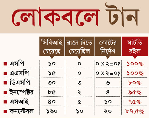 টানাটানি লোকবলের। পশ্চিমবঙ্গে সারদা ও অন্যান্য অর্থলগ্নি সংস্থার কেলেঙ্কারির তদন্তে যত লোকবল দরকার, সিবিআইয়ের কাছে তা নেই। রাজ্যের কাছে চেয়েও যথেষ্ট সংখ্যায় পুলিশ অফিসার মিলছে না। সিবিআই যা চাইছে, রাজ্য দিতে চাইছে ঢের কম।