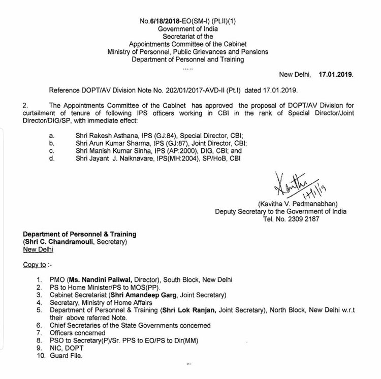 অলোক বর্মার পর এ বার রাকেশ আস্থানা। ছুটিতে পাঠানো সিবিআইয়ের বিশেষ ওই অধিকর্তাকে বৃহস্পতিবার বদলি করার নির্দেশ জারি করেছে কেন্দ্রীয় সরকার।