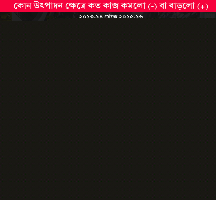 প্রথমত, শিল্পক্ষেত্রে বিপজ্জনক অবস্থা। বিপজ্জনক, কারণ এই সময়ে শিল্পক্ষেত্রে উৎপাদন বেড়েছে অনেকটাই। অথচ, কাজ কমে গিয়েছে। কাজ-বিহীন বৃদ্ধির সমস্যা, যা আধুনিক, পুঁজি-নির্ভর উৎপাদন ব্যবস্থার একটা অঙ্গ।