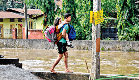 এ ভাবেই স্কুলের পথে।—নিজস্ব চিত্র।