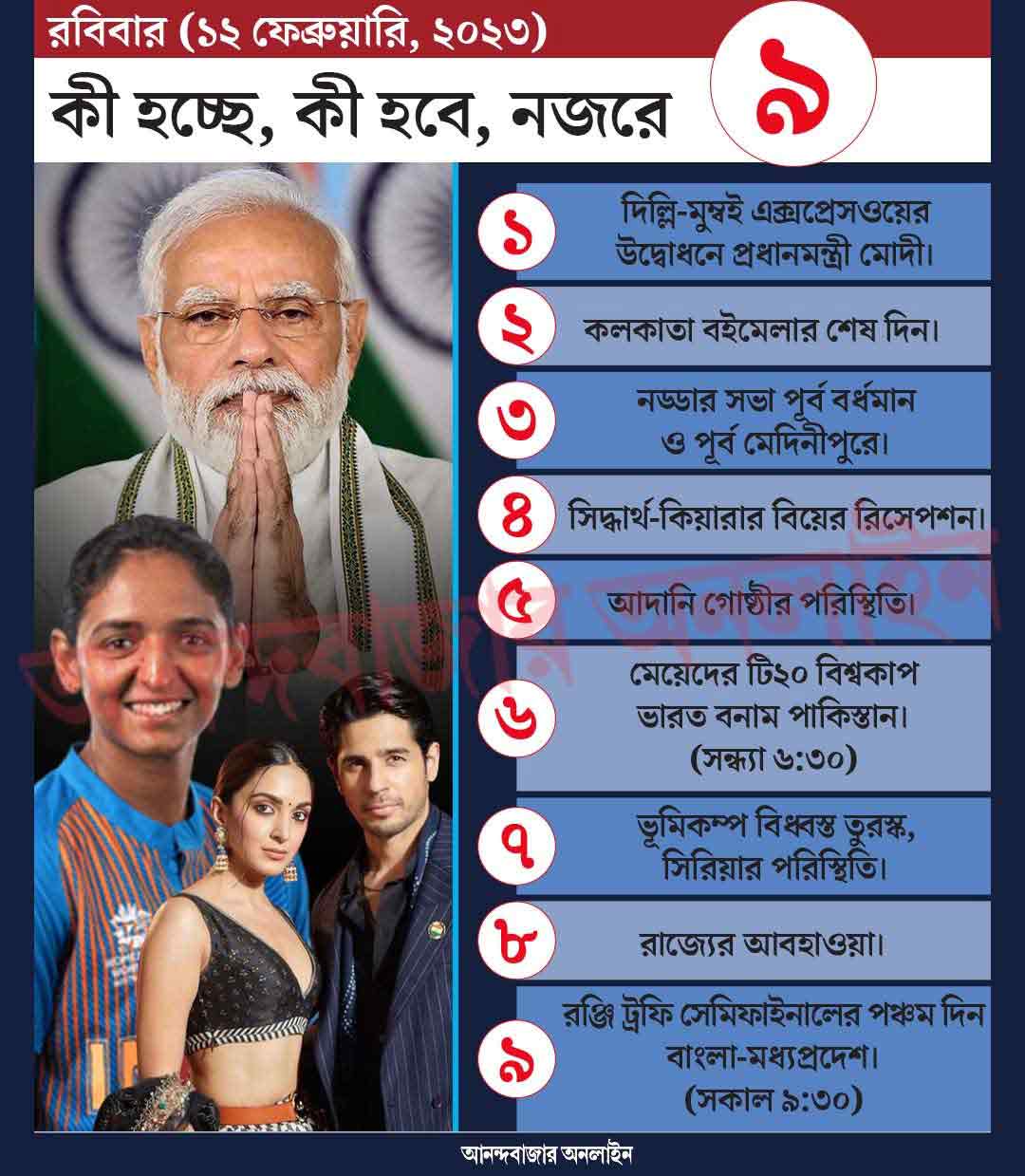 আজ, রবিবার দিল্লি-মুম্বই এক্সপ্রেসওয়ের উদ্বোধন করবেন প্রধানমন্ত্রী নরেন্দ্র মোদী। দুপুর নাগাদ এই অনুষ্ঠানটি শুরু হওয়ার কথা। আজ নজর থাকবে এই খবরের দিকে।