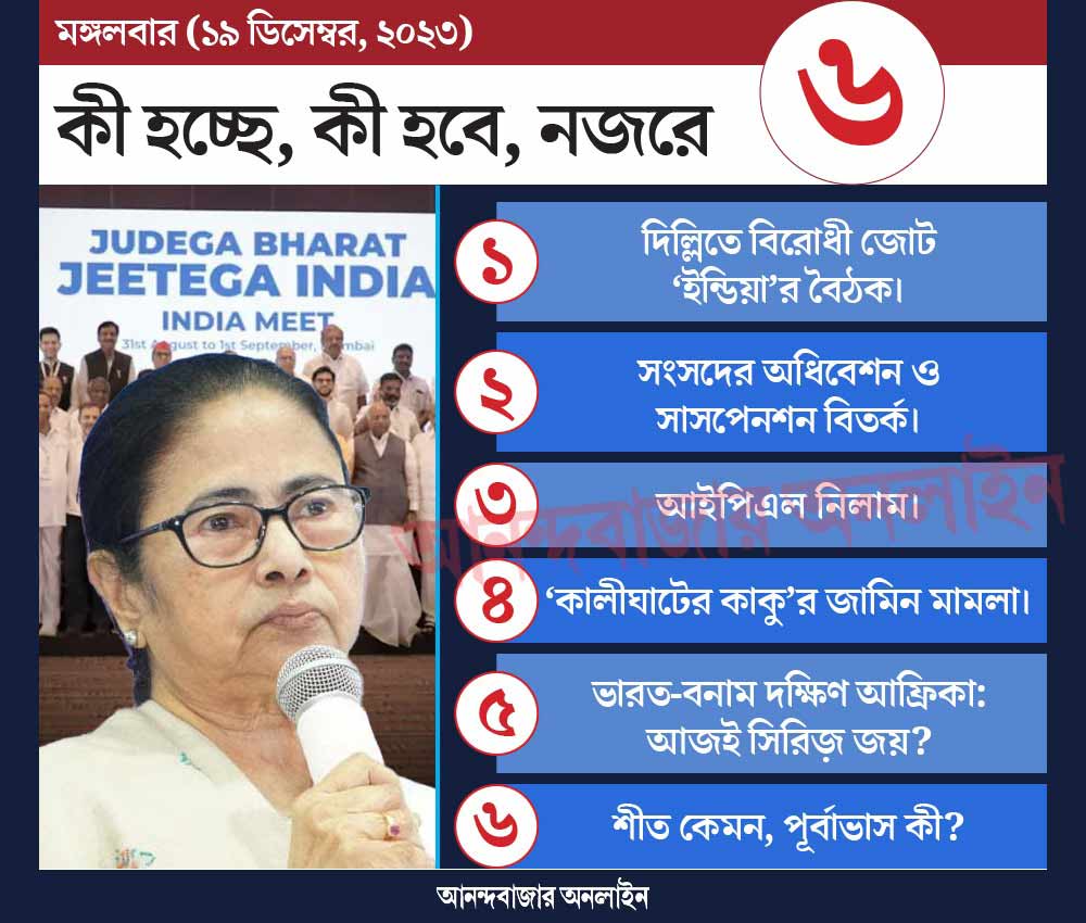 মঙ্গলবার দেশের রাজনীতির আগ্রহের কেন্দ্রবিন্দু হতে চলেছে রাজধানী দিল্লি। বিকেলে সর্বভারতীয় স্তরে বিজেপি বিরোধী জোট 'ইন্ডিয়া'র বৈঠক রয়েছে। তিন রাজ্যে হারের পর কংগ্রেস এই প্রথম জোটের সব শরিকদের নিয়ে বৈঠকে বসছে। বৈঠকে গুরুত্বপূর্ণ ভুমিকা নিতে পারেন তৃণমূলনেত্রী তথা বাংলার মুখ্যমন্ত্রী মমতা বন্দ্যোপাধ্যায়। লোকসভা ভোটের আসন সমঝোতা নিয়ে কী আলোচনা হয়, অভিন্ন কোনও ফর্মুলা নির্ধারিত হয় কিনা সেই সংক্রান্ত খবরে নজর থাকবে।