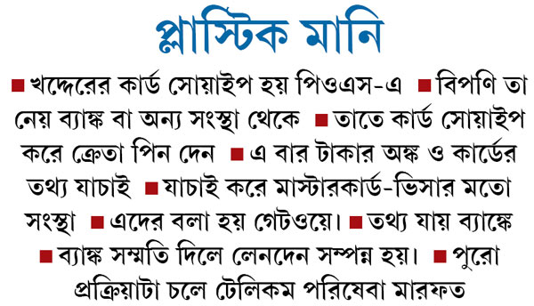 অর্থাৎ, কাগুজে নোটের আকালে ভরসা প্লাস্টিকের কার্ড। কিন্তু সেখানেও বিপত্তি! হামেশাই মোক্ষম সময়ে ‘প্লাস্টিক মানি’ জবাব দিচ্ছে। বিশেষত ভরসন্ধেয়, বিক্রিবাটা যখন তুঙ্গে। জিনিসপত্র কিনে ক্রেতা পেমেন্টের লাইনে বিস্তর অপেক্ষা করে দাম চুকোতে গিয়ে দেখছেন, কার্ড ‘ডিক্লাইনড।’ মানে, কম্পিউটার কার্ড গ্রহণ করছে না। নেট যোগাযোগ থমকে। পেট্রোল পাম্পে গাড়িতে ফুল ট্যাঙ্ক তেল ভরে দাম দিতে গিয়েও অনেকের একই অভিজ্ঞতা!